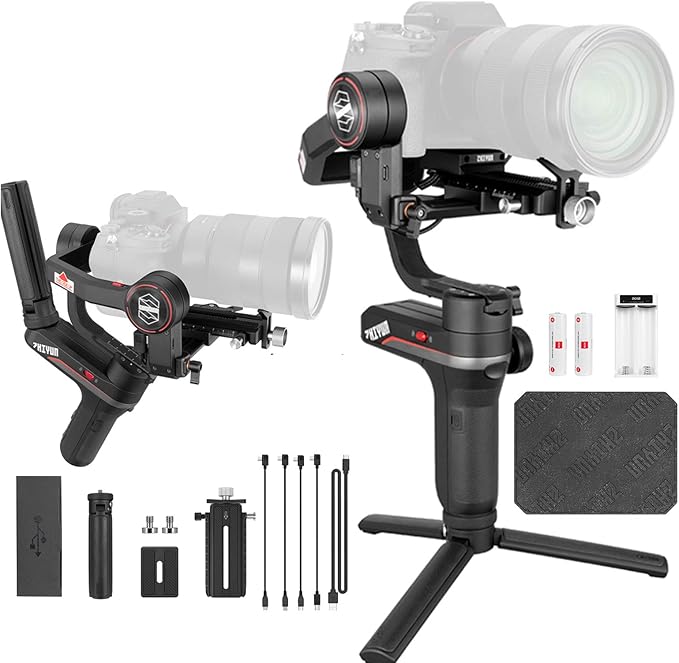- [Supreme Power. Greater Compatibility]:Thanks to new High-precision software algorithms and more effective motors ,the weebill s stabilizer for mirrorless cameras supports a wide range of cameras and lenses. The Max Payload up to 3KG/ 6.6 lbs while still achieving a smooth, cinematic shot. Combos like for Sony A7Ⅲ+FE 24-70mm F2.8 and Canon 5D4+EF 24-70mm F2.8 .